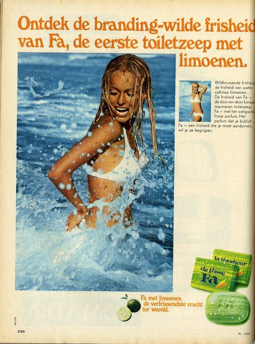 In de jaren ’70 draaide reclame vooral om het zaaien van een droom. Een huisvrouw kocht geen wasmiddel, maar een glimlach van haar gezin. Een man kocht geen auto, maar status en avontuur. Fa bracht wilde frisheid in iedere badkamer.